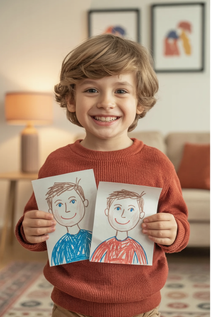 Я был потрясён, когда мой сын начал рисовать незнакомца с широкой ухмылкой.