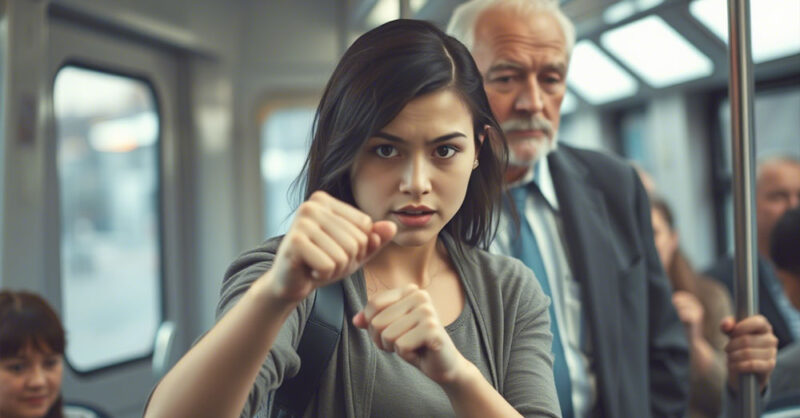 Тут внимание привлекли громкие голоса. В вагон вошла компания из троих парней, которые окружили пожилого мужчину.