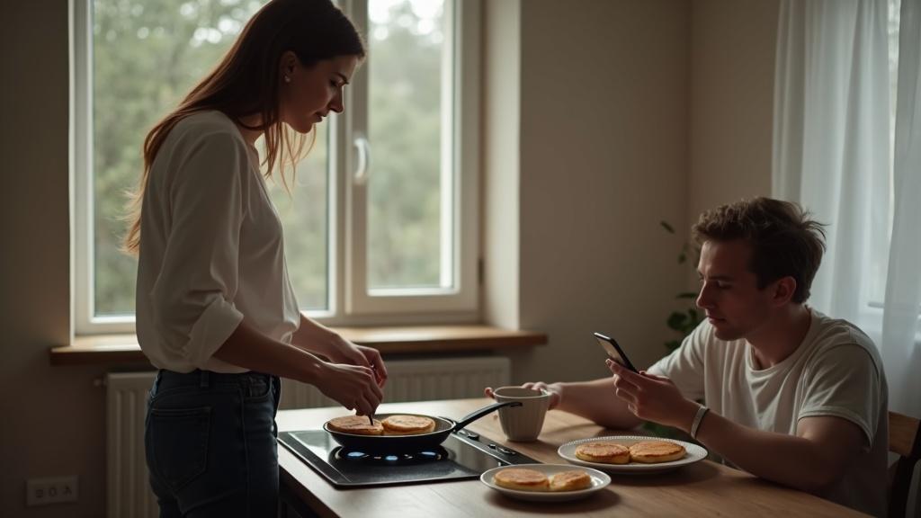 Наташа замерла у плиты, где готовила его любимые сырники. Это был уже третий раз за два года, когда Толик просил её «исчезнуть» на время приезда родственников. Что-то надломилось внутри, словно треснуло тонкое стекло.