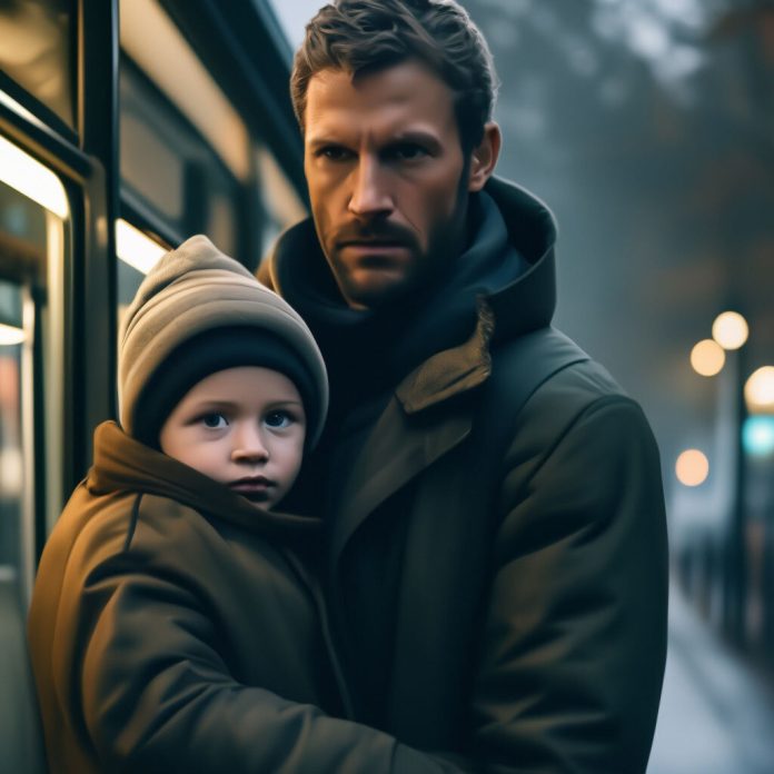 Да и руки у него были заняты. В одной руке сумка, в другой ребёнок.